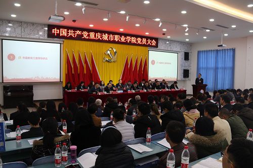会上,王茂良同志宣读了中共重庆市委教育工作委员会《关于召开中国共产党重庆城市职业学院新一届党员大会的批复》。李源田同志作了讲话,他代表市教育工委、市教委对大会的召开表示热烈的祝贺,向与会全体党员和全校师生员工致以诚挚的问候。他指出,近年来,学院党委全面贯彻党的教育方针,坚持社会主义办学方向,坚决维护以习近平同志为核心的党中央权威,认真贯彻中央、市委的系列决策部署,切实加强党委对学院的领导,团结带领学院党员和广大师生员工按照“调整、规范、提高、跨越”的办学思路,大力实施“强基固本,树型占位”发展战略。他指出,开好本次党员大会,对学校在新的历史起点上认真总结过去、科学规划未来、推动科学发展、加强党的建设具有十分重要的意义。他提出了四点希望:一是严格按照会议的各项安排,精心组织开好本次党员大会;二是以开好本次党员大会为契机,不断加强、改进学院党建工作;三是新一届党委班子切实加强自身建设,着力提高办学质量;四是以“优质高等专科院校”建设为目标,努力开创学校改革发展新局面。