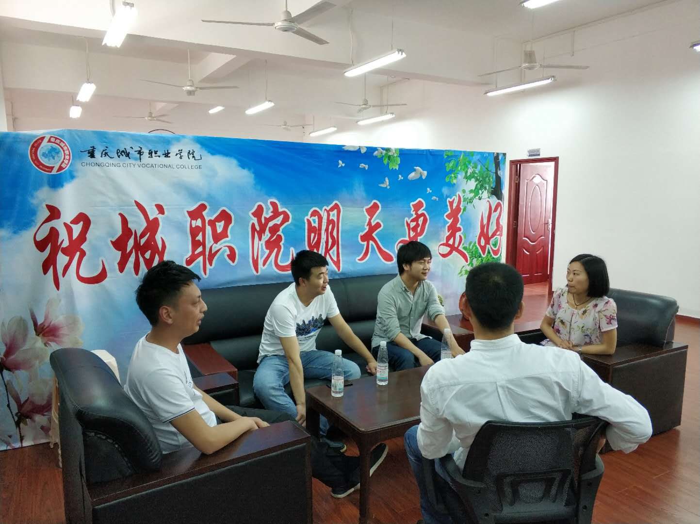 4月27日下午,学院工商管理系07级连锁经营管理专业毕业生曾志豪(淘宝(中国)软件有限公司运营专家)、王德春(重庆隆顺粉末冶金有限公司采购经理)、曹臣(国安中建建设集团有限公司璧山分公司负责人),三名同学在阔别母校八年后,相约一起回到校园走走看看。