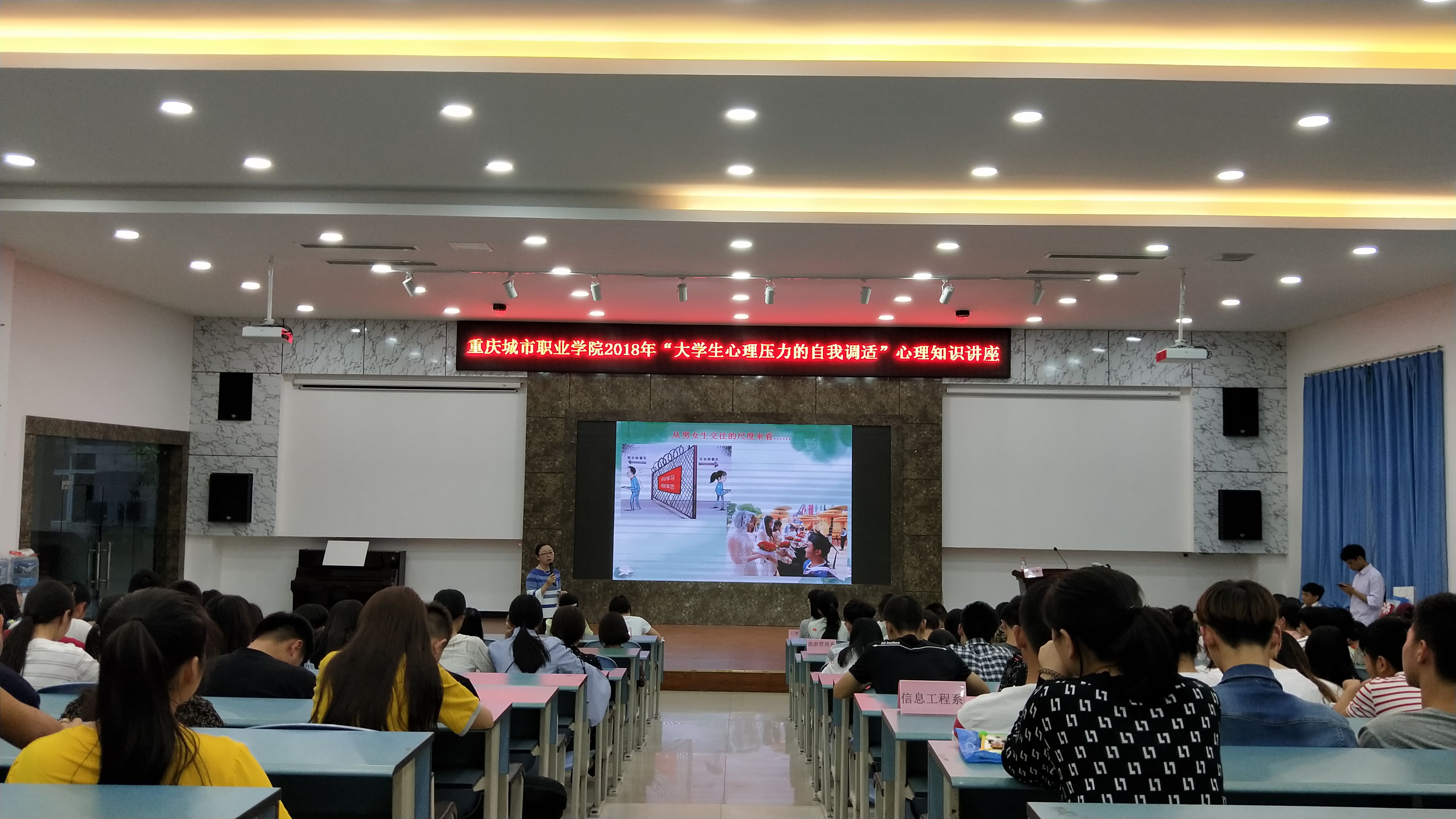 5月23日晚7:30,学院特邀重庆文理学院副教授向晋辉在学术报告厅举行“大学生心理压力的自我调适”心理知识讲座, 200余名学生聆听了讲座。