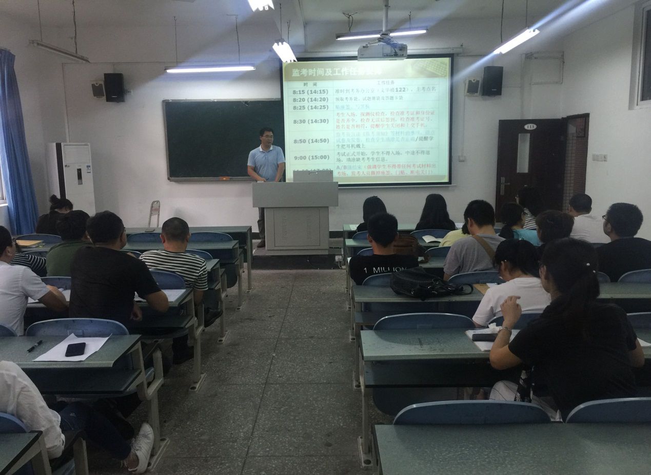 为确保2018年上半年普通高校英语应用能力考试顺利进行,6月14日下午,学院在文华楼115教室组织召开了监考工作培训会。副院长文斌,教学工作部负责人及全体监考教师参加了会议。