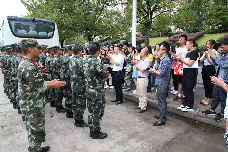 9月20日下午,承担学院2018级新生军训工作的武警重庆总队一支队三大队官兵在圆满完成军训任务后,即将离开学院,返回部队。学院院长江洪,副院长文斌,学生工作部部长朱三彬前往送别。