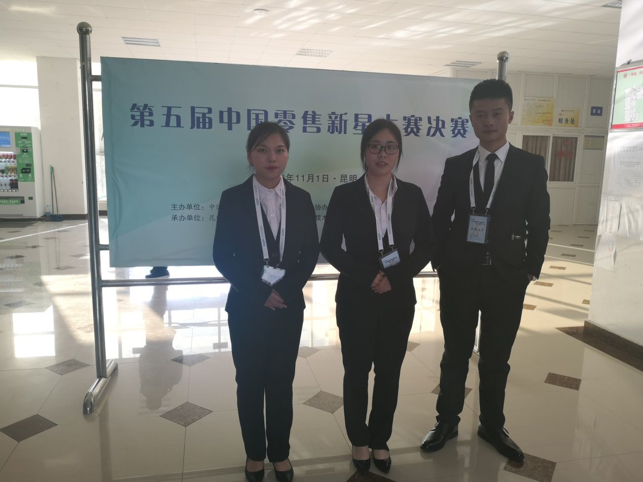 11月1日,第五届中国零售新星大赛全国总决赛在昆明冶金高等专科学校举行,学院工商管理系黎侨、姚蕊老师带队参加了此次比赛。郎勋英、余伟和李慧玲三名同学,经过激烈的角逐,沉着应战,勇夺全国二等奖,指导教师黎侨、姚蕊荣获优秀指导教师荣誉称号。
