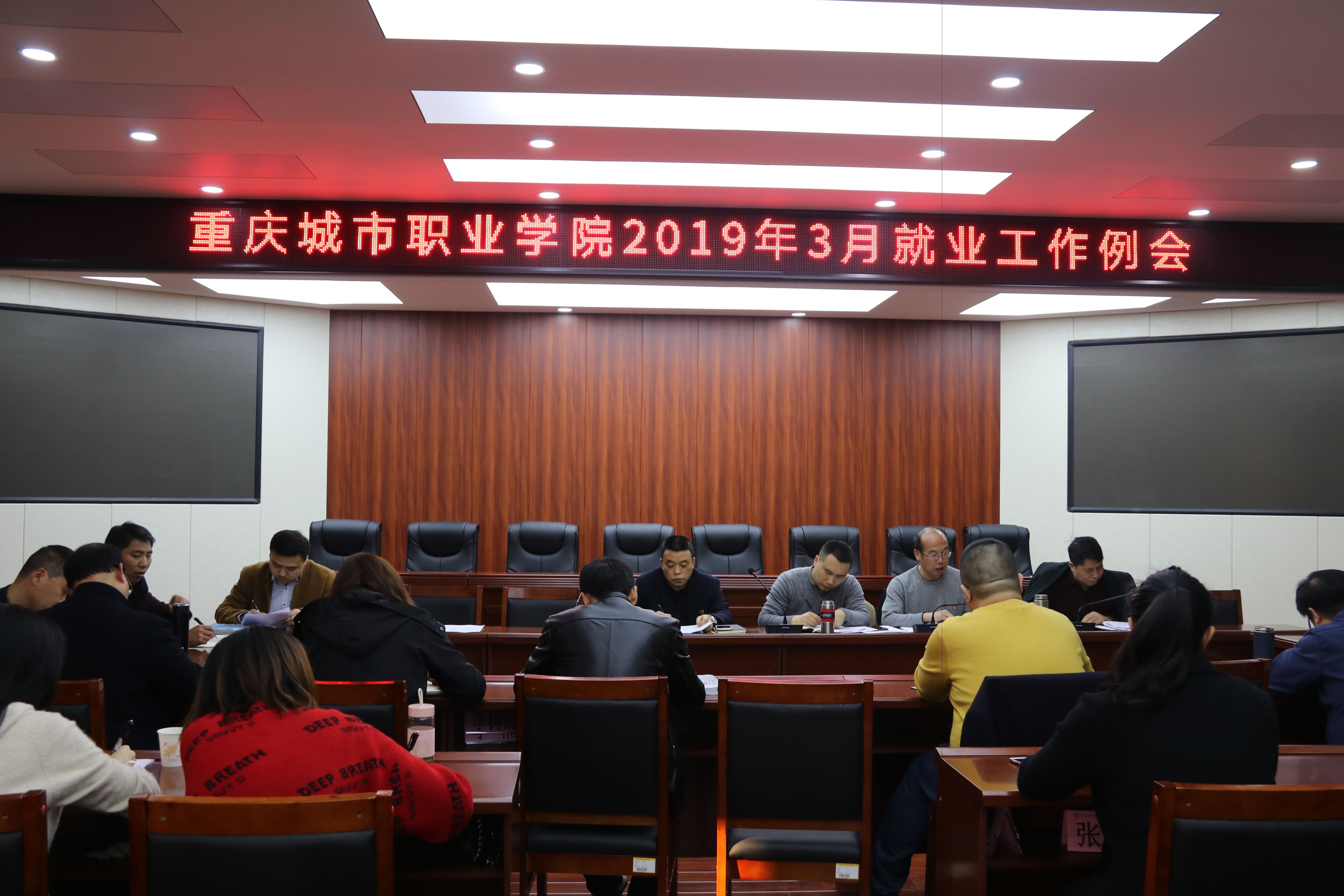 会上,文斌同志传达学习《重庆市大学中专毕业生就业指导服务中心关于贯彻落实市教委渝教学发【2018】8号文件有关事项的通知》文件精神,他强调,要厘清顶岗实习与就业之间的关系,加强对各就业部门与相关网站的关注,持续开展双选会,有组织多渠道地提高毕业生就业率。随后,各二级院系负责人汇报了2019届毕业生3月就业工作情况及下一步工作计划。