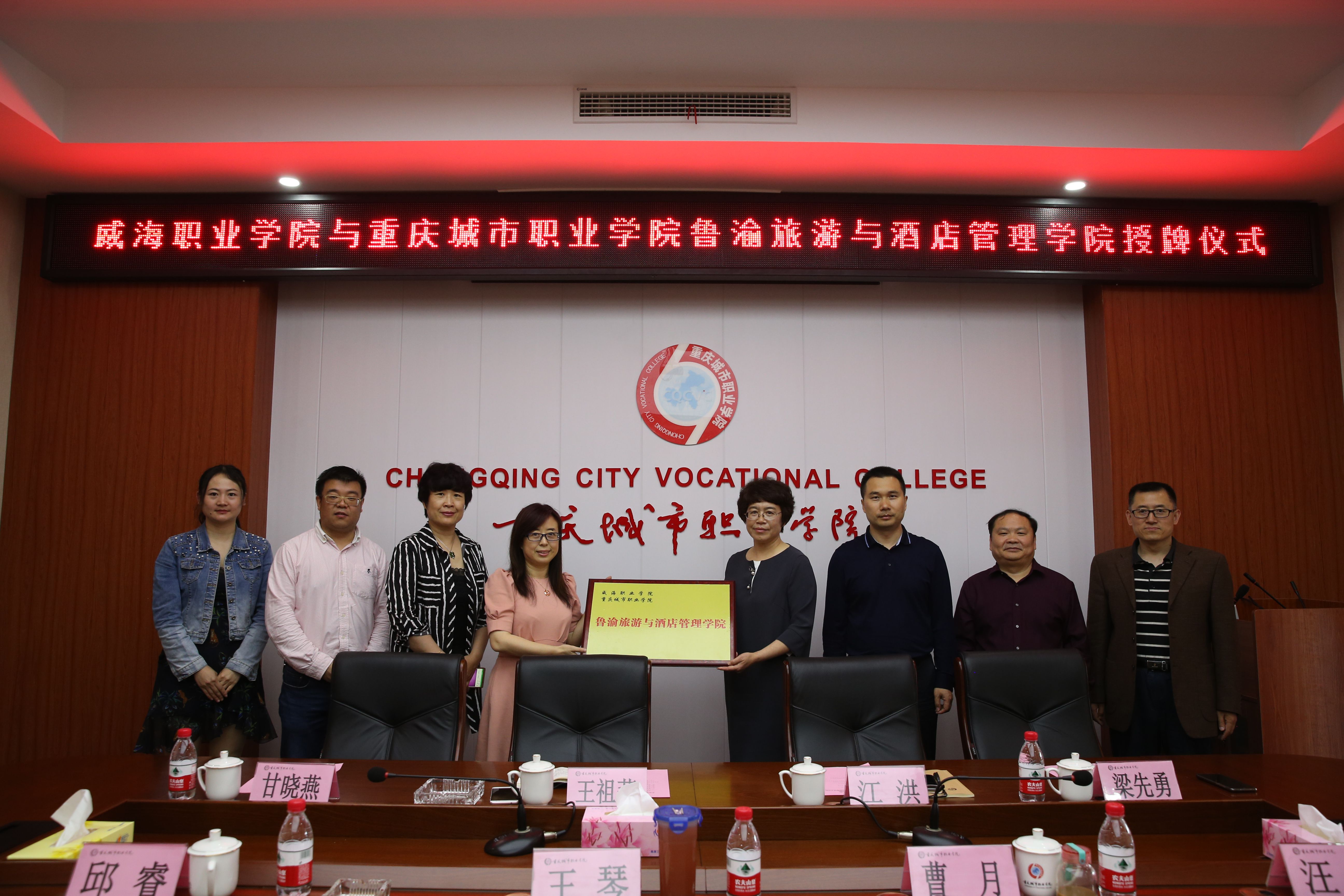 鲁渝旅游与酒店管理学院授牌,她介绍了威海职院的历史发展,分享了办学经验、办学理念和办学方法,希望本着“一切为了学生的发展”,互派师生访学,促进东西部文化交流。学院旅游管理系负责人对威海职院的帮扶表示感谢,希望两校的旅游管理系加强联系,学习借鉴宝贵经验,提升专业建设质量,促进系部发展。