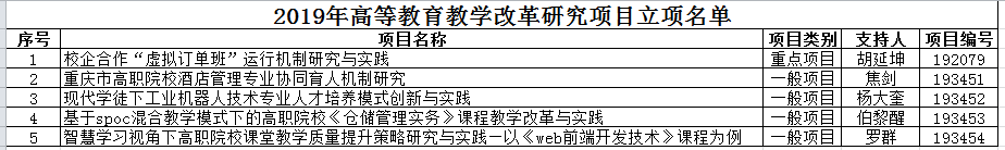 近日,重庆市教育委员会高教处公布了2019年高等教育教学改革研究项目立项结果。学院教师胡延坤、杨大奎、罗群、焦剑、伯黎醒作为课题负责人申报的课题成功立项。