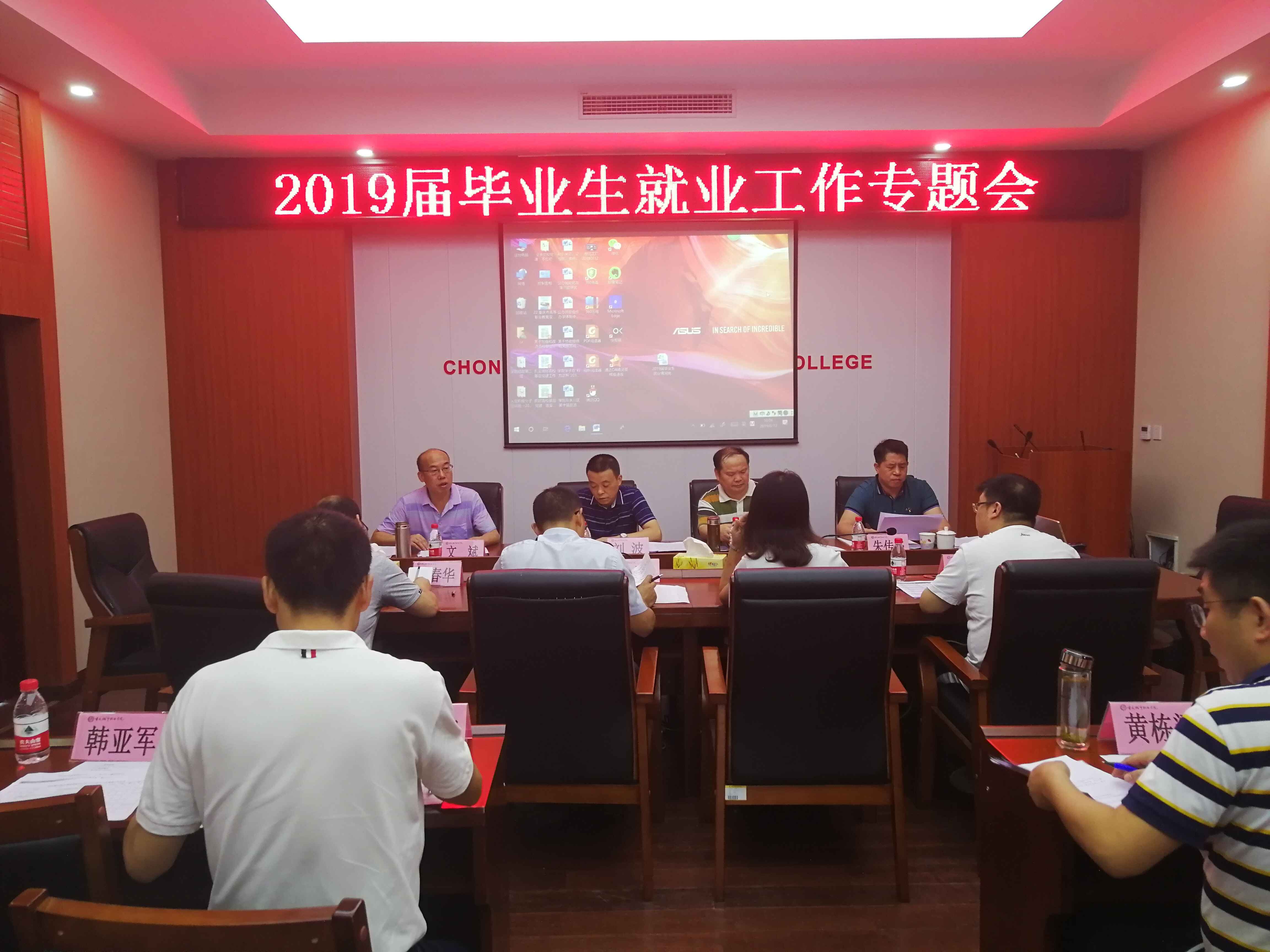 2019年8月12日上午,学院在博学馆607会议室召开2019届毕业生就业工作专题会,学院党委书记刘波、副院长梁先勇、副院长文斌、纪委书记朱传书出席会议,党政办公室、学生工作部、教学工作部、财务处负责人,各二级院系党总支书记、主任、就业干事、2019届毕业生辅导员,学生工作部就业创业服务科全体工作人员参会。会议由文斌同志主持。