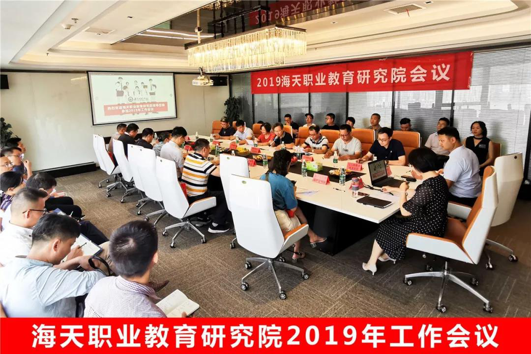 海天职业教育研究院院长李炳顺主持会议并发言,海天集团董事长海军致欢迎词。李炳顺院长汇报了2019年研究院工作思路和研究计划,发布了基于产教融合的类型教育特色思路。海天集团副总裁余琴做研究院工作汇报,海天集团副总曹冀进行2019年研究院课题发布。
