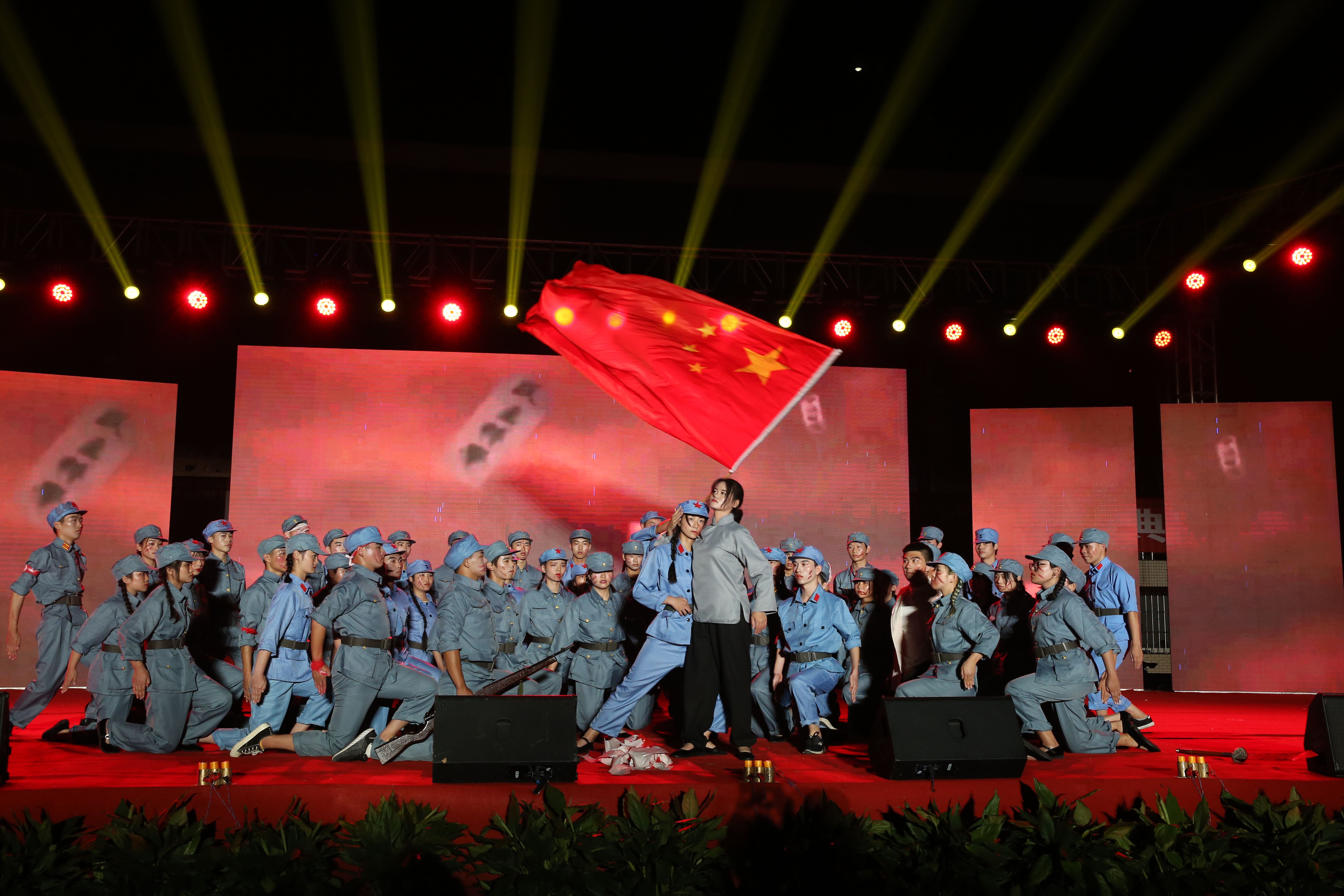 舞蹈《花开盛世》和《锦绣中华》,通过一段段生动的演绎,勾勒出一幅祖国繁荣昌盛和人民幸福吉祥的美丽画卷;朗诵《少年中国说》展现了青少年励志奋进、奋发图强的精神面貌;舞蹈《十送红军》,把大家带入那段充满艰苦与辉煌的岁月,感受红军战士不怕牺牲、一往无前的英雄气概,弘扬了红军精神,展现了军民鱼水情深;合唱《在灿烂阳光下》和《不忘初心》通过慷慨激昂的歌声,谱写了一曲城职人不忘初心、砥砺前行的奋进乐章。