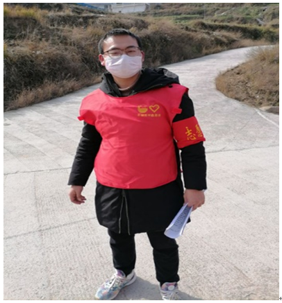 重庆市丰都县三建乡夜力坪村虽地处偏远,但春节返乡务工人员比较多,疫情防控形势比较严峻。“看了新闻报道,收到学校推送的信息,我知道现在情况比较危急,村里有需要,我愿意成为志愿者参与村里的疫情防控。”在收到村支两委招募本村大学生志愿者的通知后,他毅然决然报名参加。
