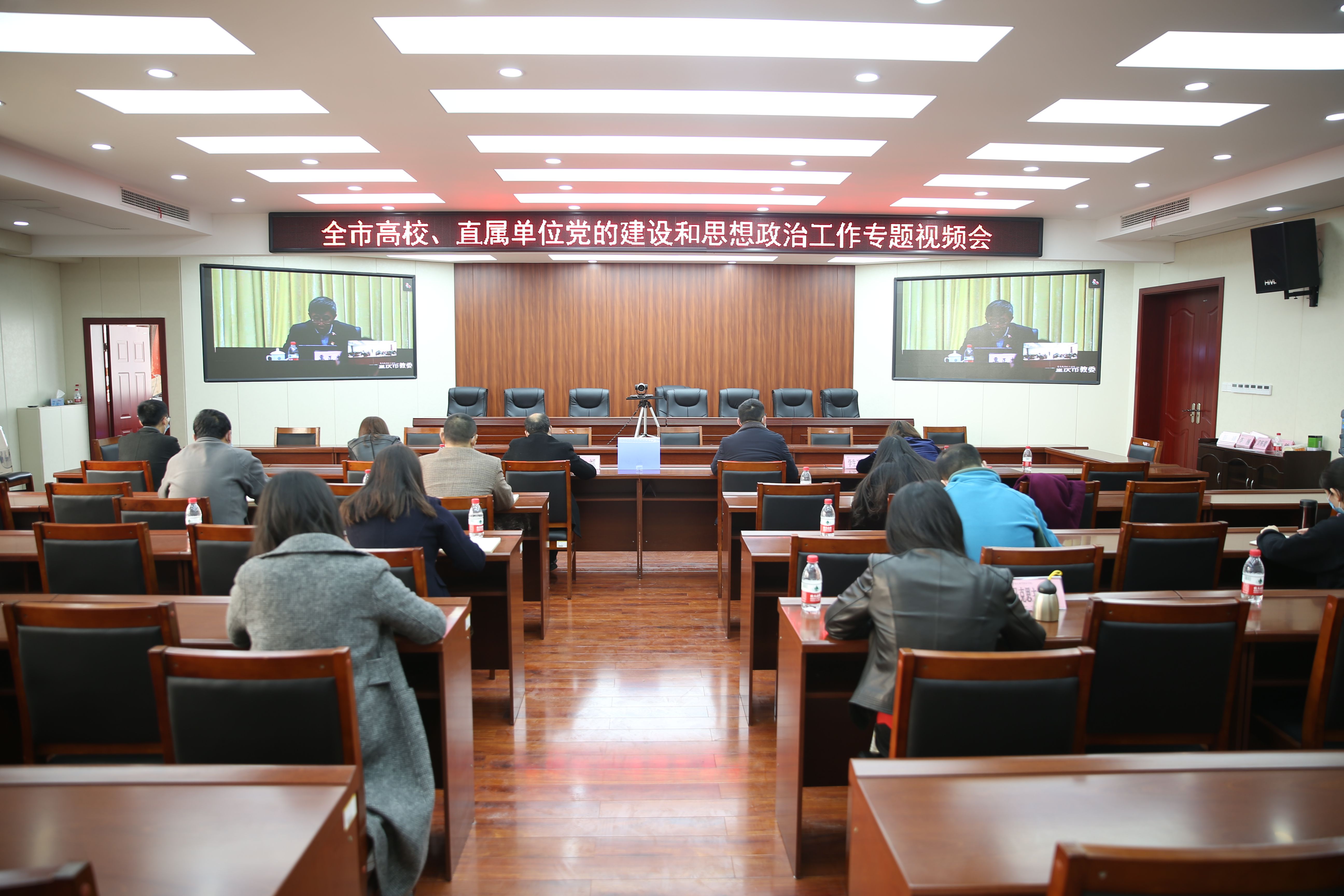 根据市委教育工委安排,3月31日下午,学校党委委员、副校长文斌,相关党务部门、各二级院系党组织负责人在博学馆510会议室参加全市高校、直属单位党的建设和思想政治工作专题专题视频会。