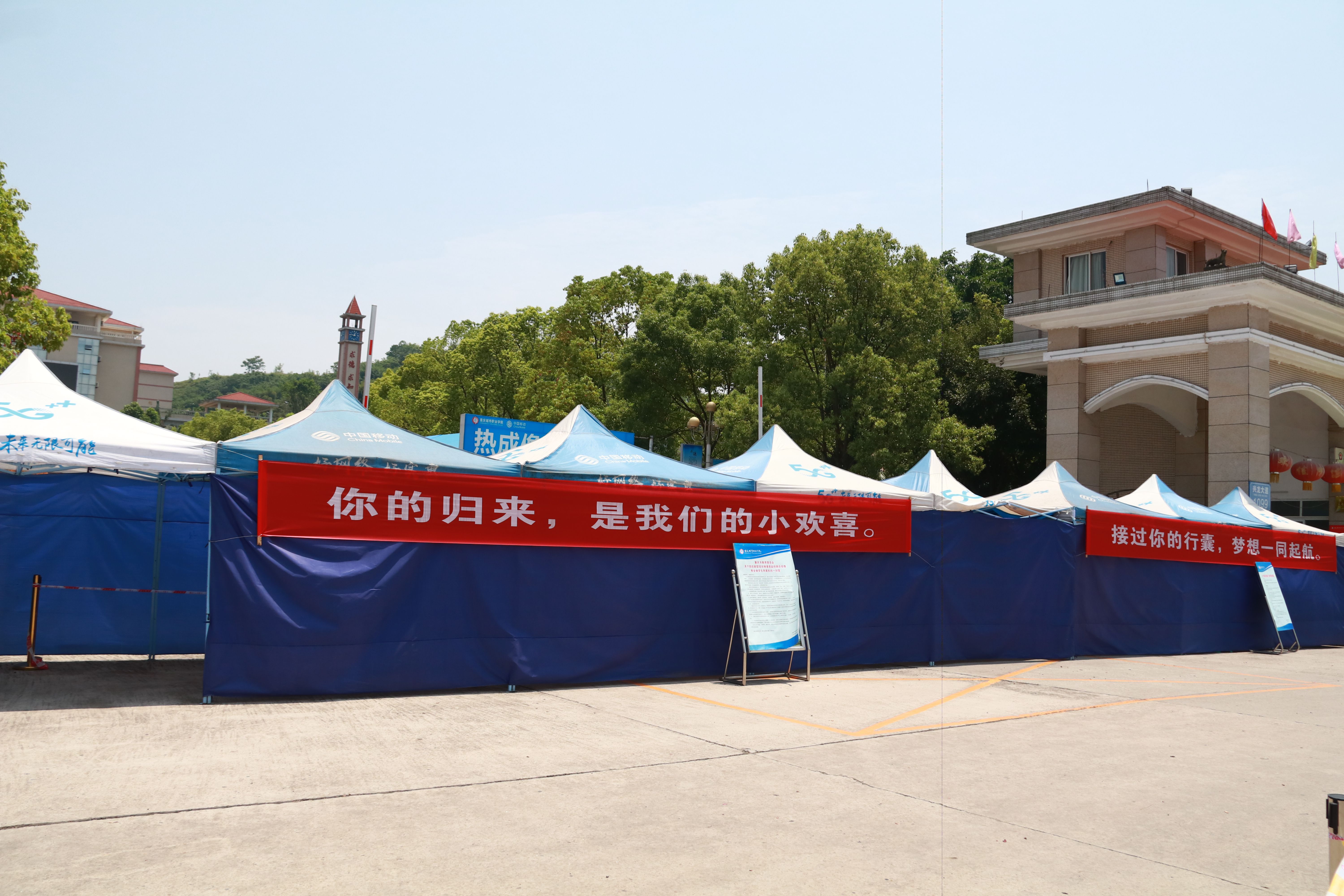 15日一早,学校领导、有关部门负责人、院系辅导员、后勤保卫工作人员全部到位,为返校学生提供最贴心的服务。返校学生均按照要求佩戴口罩,保持1米间距有序报到,严格经过行李消毒、洗手消毒、更换口罩、红外线测温、查验“渝康码”、提供健康承诺书等流程后进入校园。