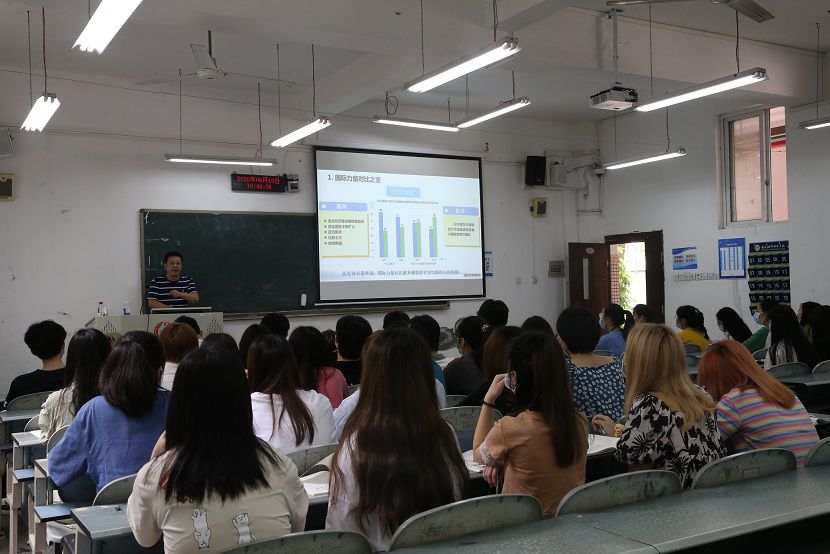 唐玉林教授引用“扣子论”打开课堂,强调了思政课是立心立德的重要课程,并指出形势与政策教育是高校结合时事涵养学生价值观的重要渠道。他从“深刻认识百年未有之大变局”、“大变局中机遇与挑战同生并存”、“大变局中的中国角色”三个方面,带领大家熟知了当今世界的“变”,全面分析了中国在面对世界之“变”的大国形象和责任担当。他强调:中国是以“穷则独善其身,达则兼济天下”的文明基因全面崛起的,中国共产党的初心和使命,就是为中国人民谋幸福,为中华民族谋复兴,为世界谋大同,为人类创未来。