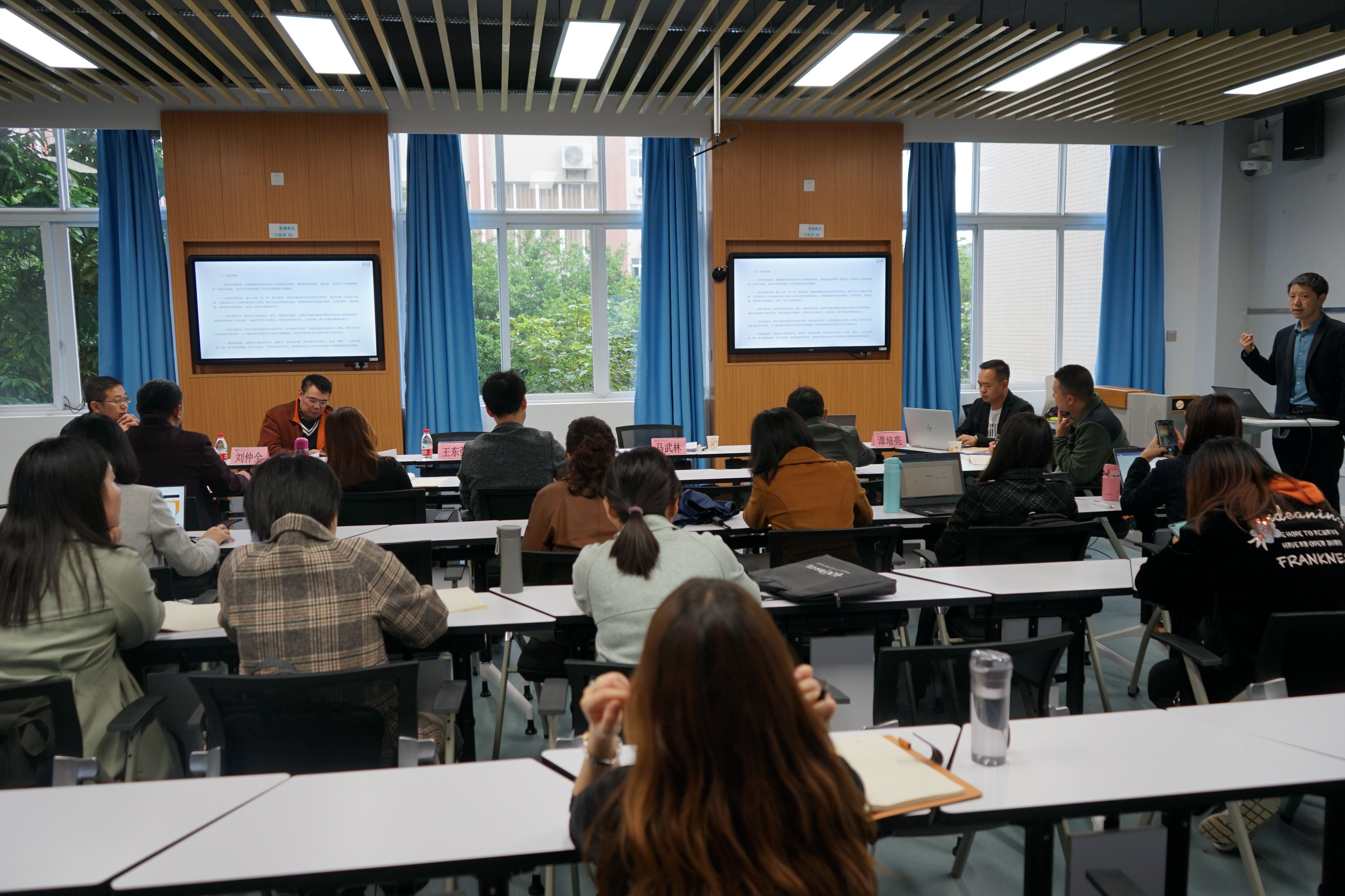 10月14日下午,学校在文华楼327智慧教室召开一流课程建设专家指导会。四川外国语大学马武林教授等2名校外专家,各教学院系院长(主任)、办公室主任,申报一流课程负责人及团队骨干参加会议。党委委员、副校长刘仲全出席会议。