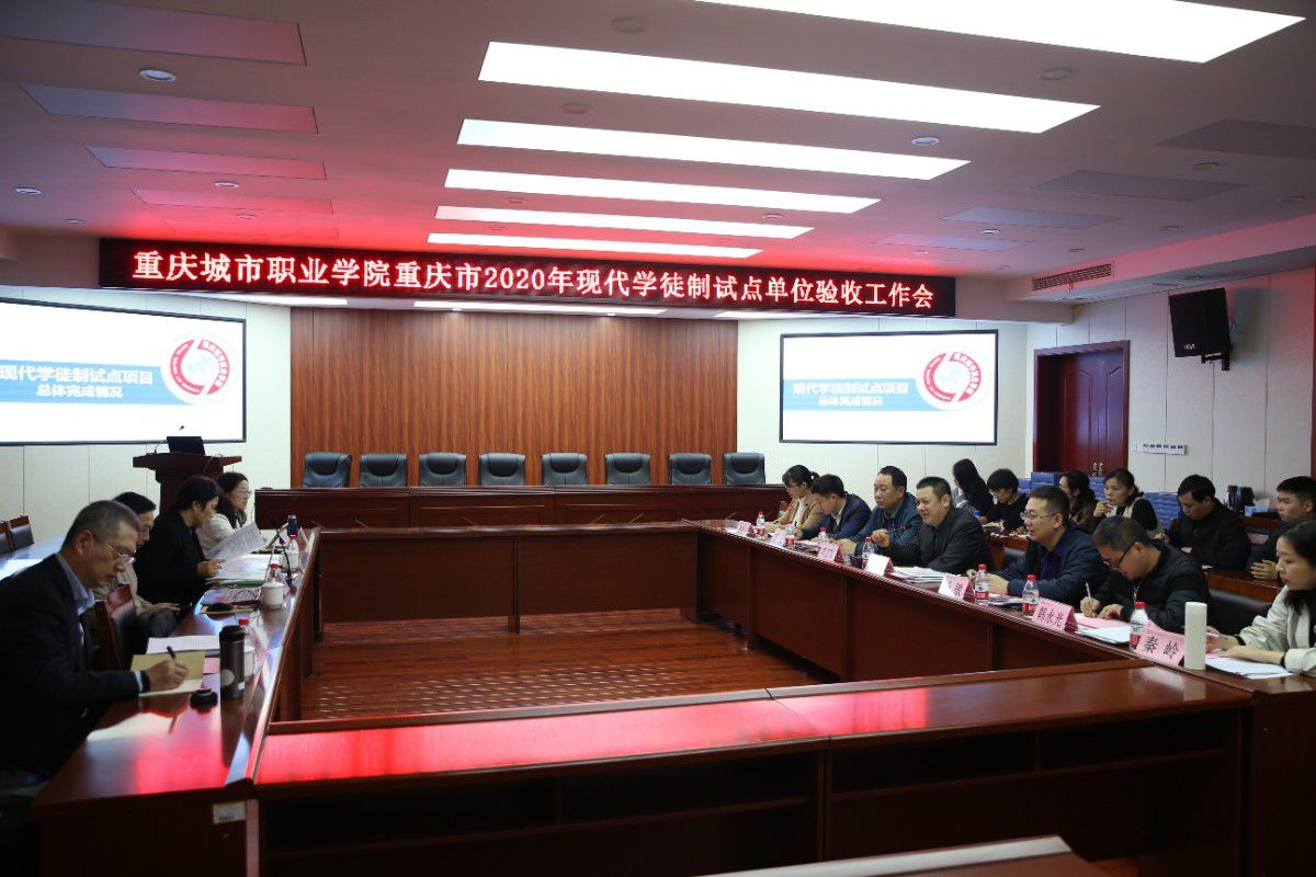 10月27日下午,学校在博学馆510会议室召开重庆市2020年现代学徒制试点单位验收工作会。全国现代学徒制工作委员会专家库专家、重庆工程职业技术学院黄炎培职业教育研究院院长谭绍华一行四人莅临学校,对现代学徒制试点项目进行现场验收。现代学徒制试点专业院系负责人、办公室主任、专业带头人、师生代表及教学工作部相关工作人员参加会议。党委副书记、校长唐玉林出席会议。