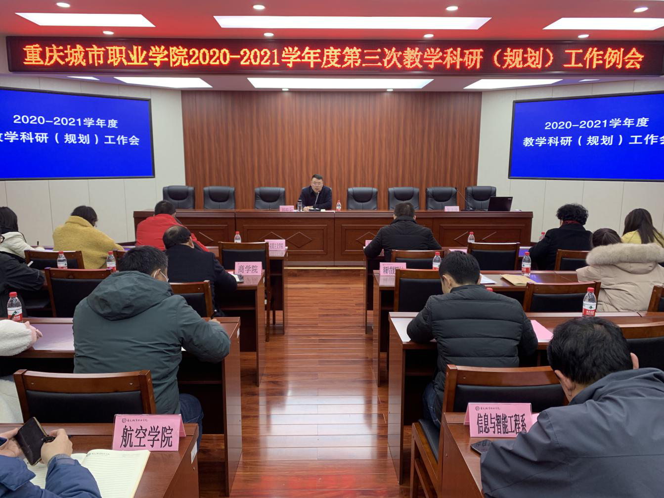 11月25日下午,学校在博学馆510大会议室召开2020-2021年度教学科研(规划)工作例会,各教学院系(部)主任、办公室主任、教研室主任、实训室负责人及教学科研部门参加会议。党委委员、副校长刘仲全主持会议。