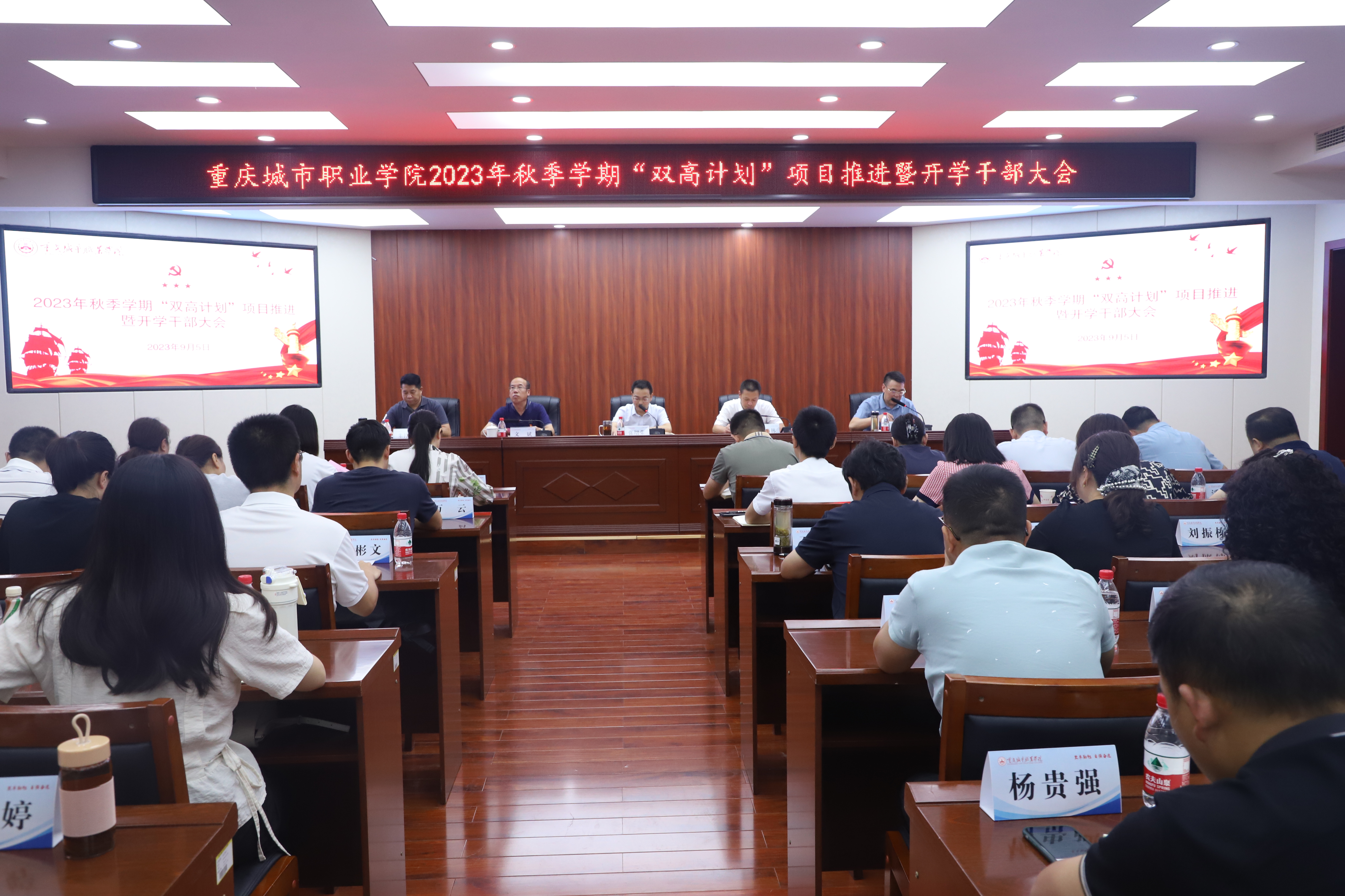 9月5日下午,学校在博学馆510会议室召开2023年秋季学期“双高计划”项目推进会暨开学干部大会。党委书记张绍荣主持会议,党委副书记、校长唐玉林,校领导文斌、刘仲全、朱传书出席会议,全体处科级干部、正高职称教师代表、新引进高层次人才、全体博士、党支部书记和辅导员参加会议。