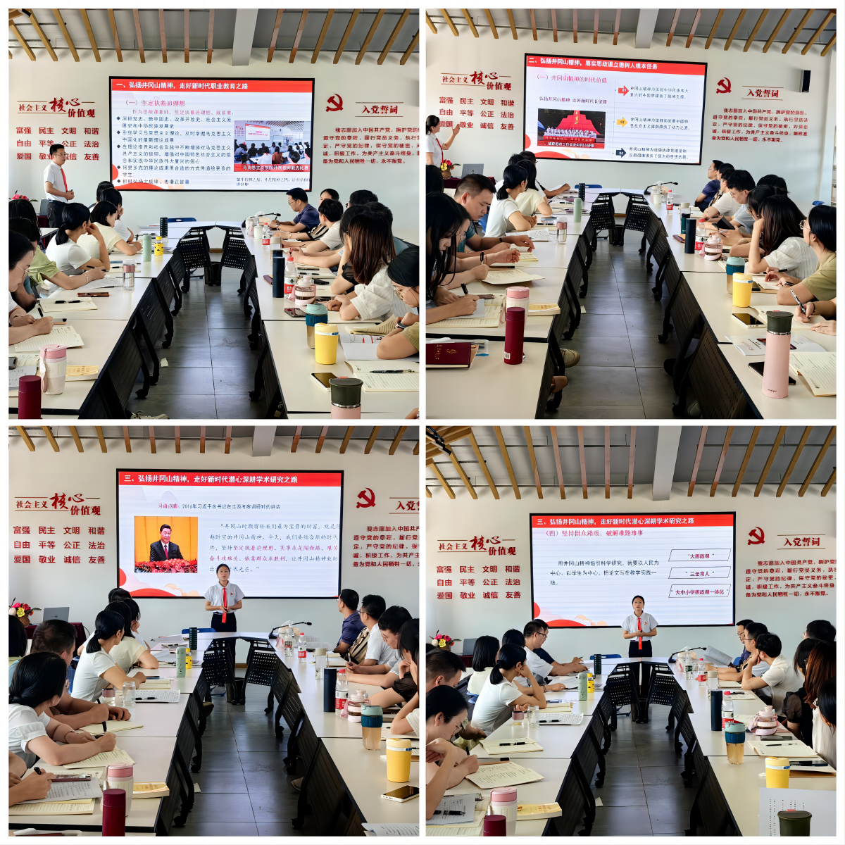 与会同志分别围绕“弘扬井冈山精神,走好新时代职业教育之路”“弘扬井冈山精神,落实思政课立德树人根本任务”“弘扬井冈山精神,走好新时代潜心深耕学术研究之路”等主题,交流分享参加暑期研修的心得体会和今后改进工作思路。