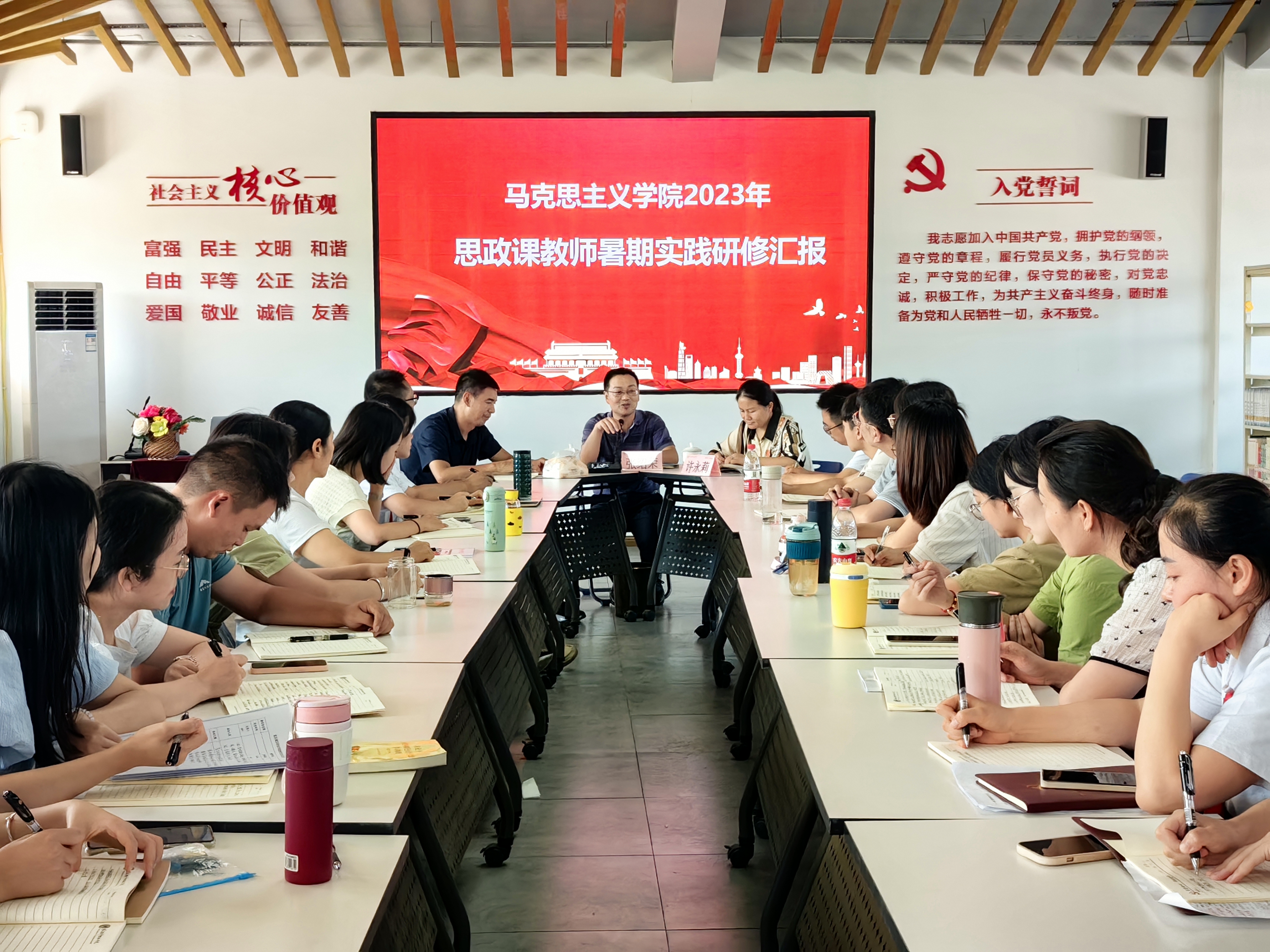 9月6日上午,思政课教师暑期研修汇报会在马克思主义学院思政教育馆召开。学校党委书记张绍荣出席会议,全体思政课专兼职教师参加会议。马克思主义学院党总支书记、院长许永莉主持会议。