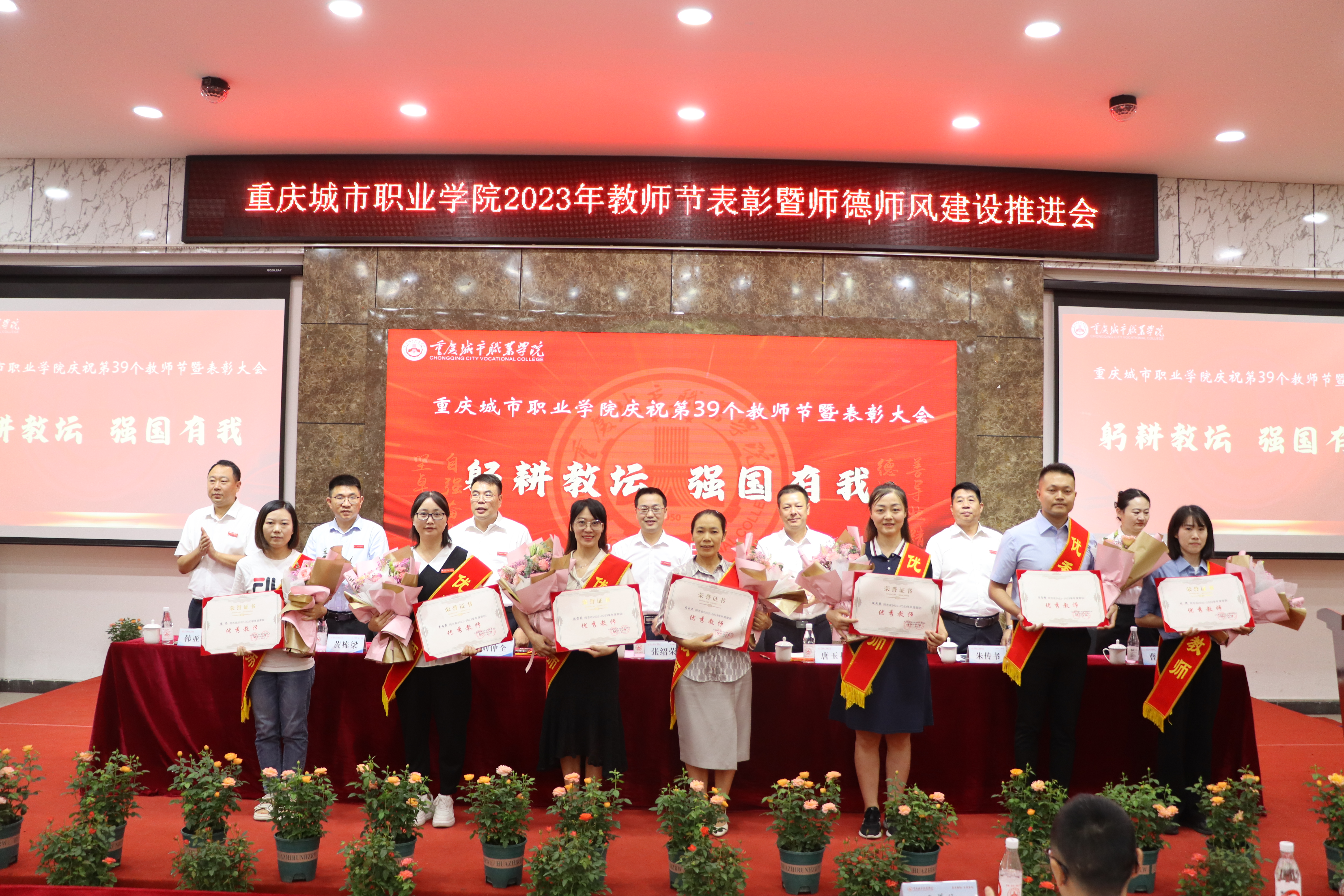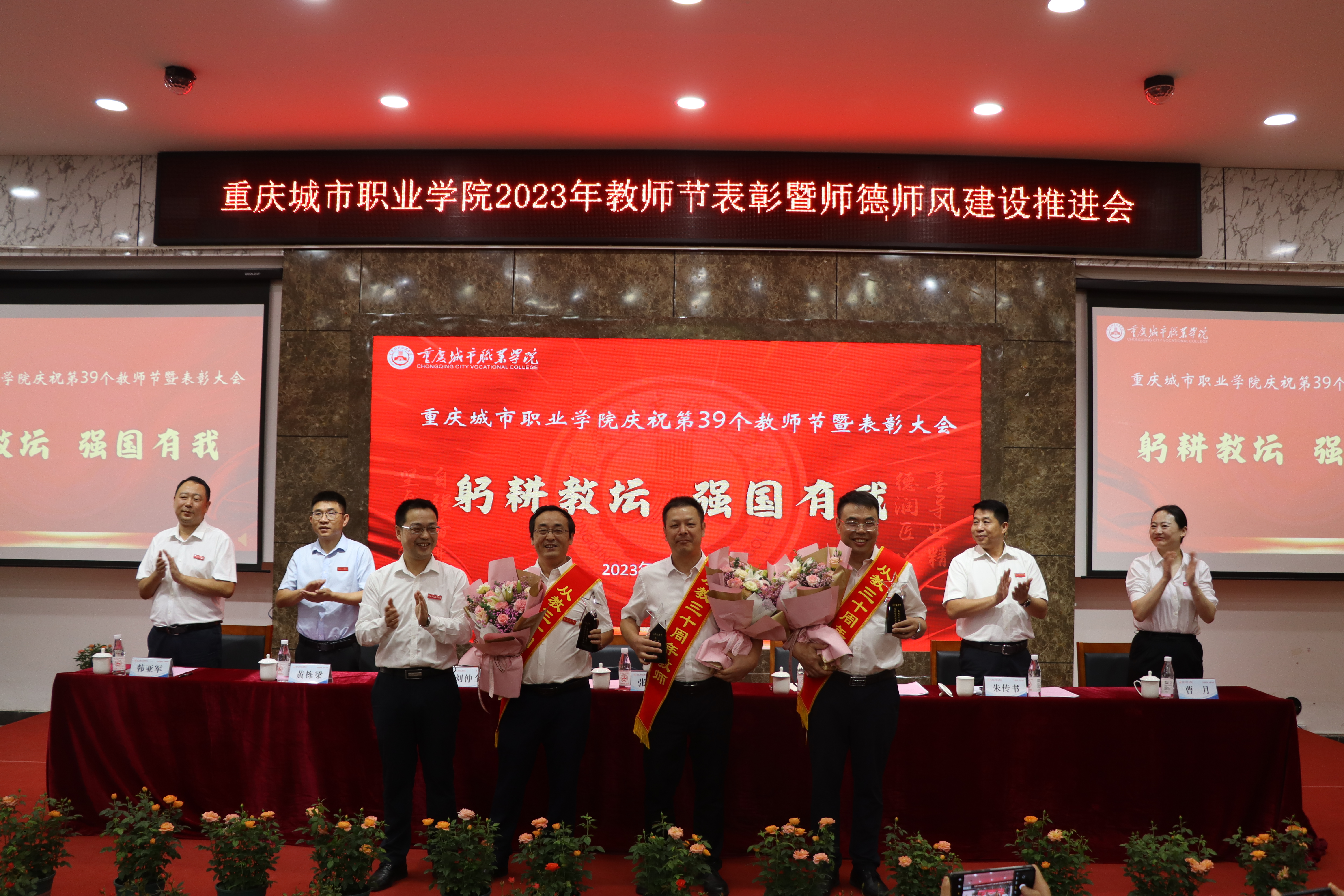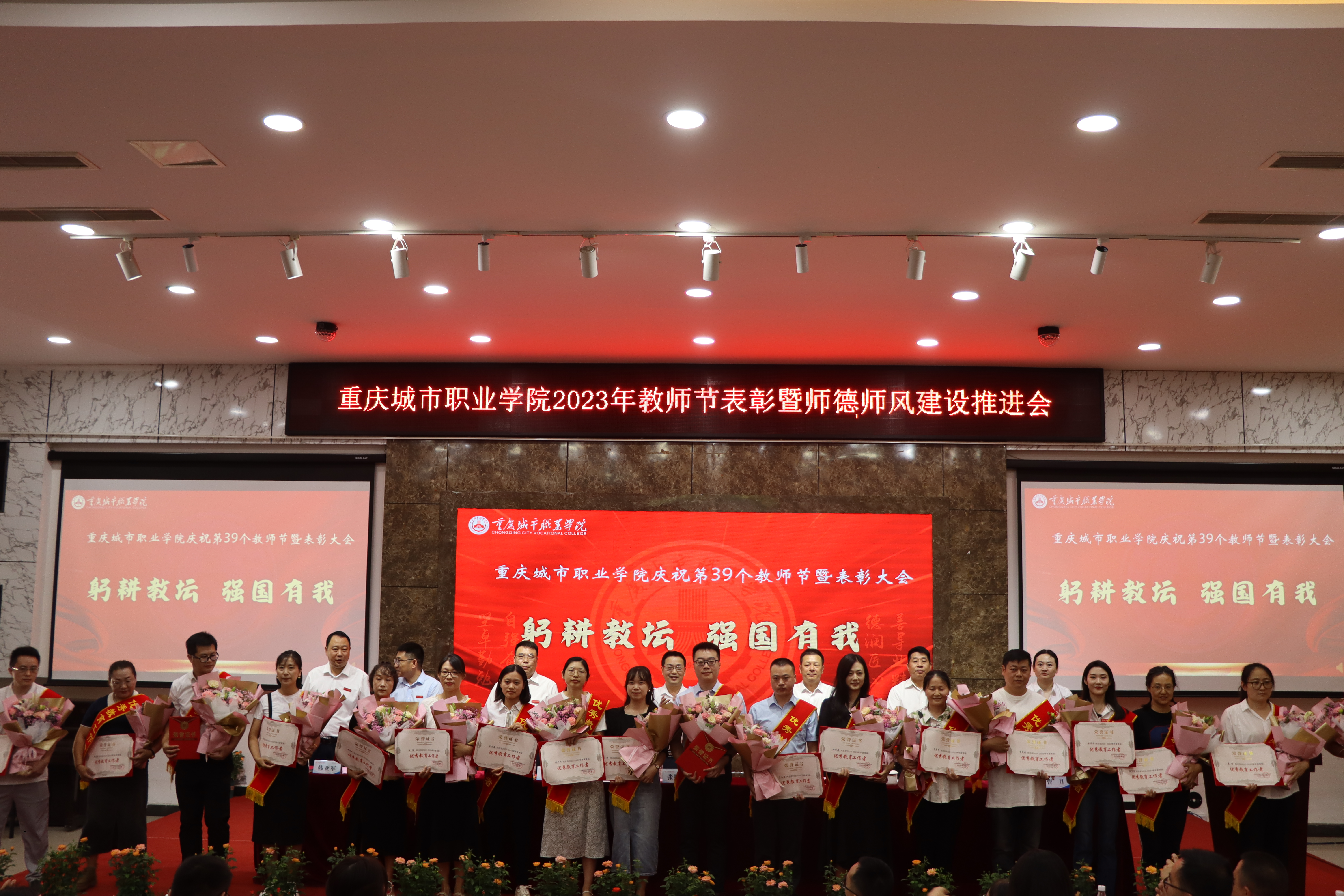 张绍荣最后强调,躬耕教坛,强国有我,事业发展永无止境,我们追求卓越的步伐永不停歇。要以更加饱满的精神状态、更加激昂的奋斗姿态,坚卓勤勉、自强奋进,积极投身到学校事业发展洪流,为学校的高质量发展出谋划策、添砖加瓦、贡献力量,共同建设具有城市职业特色的高水平高职学校。