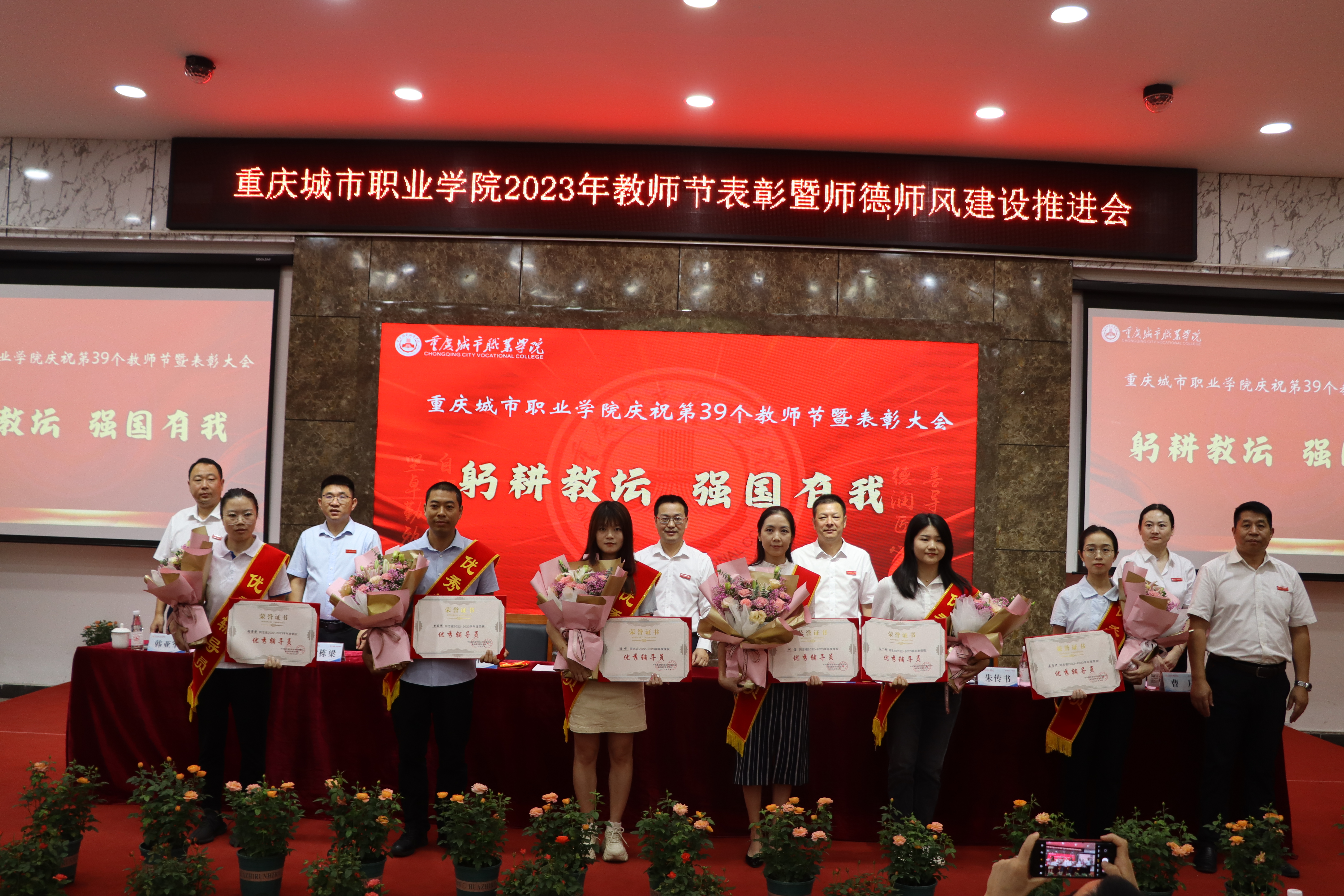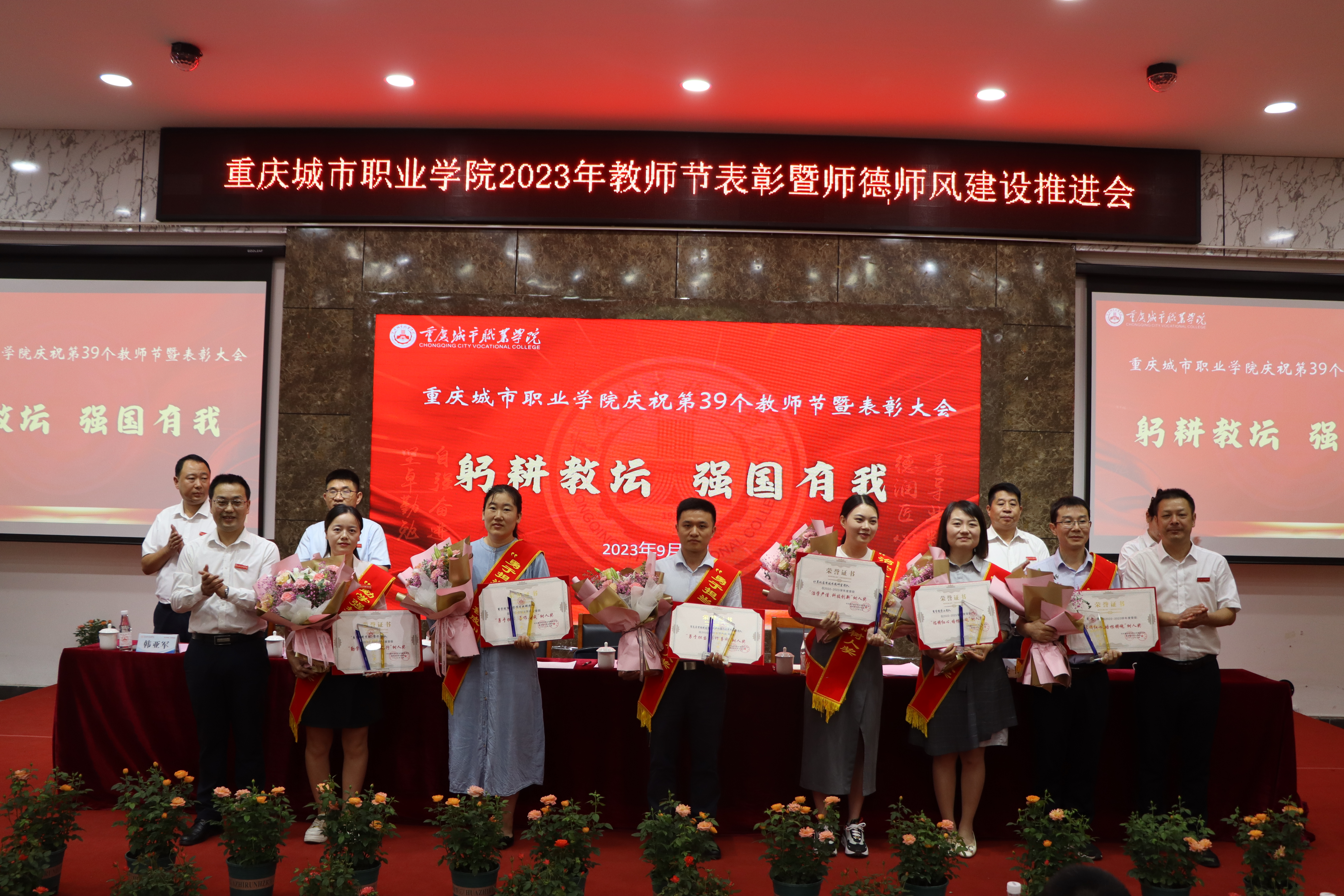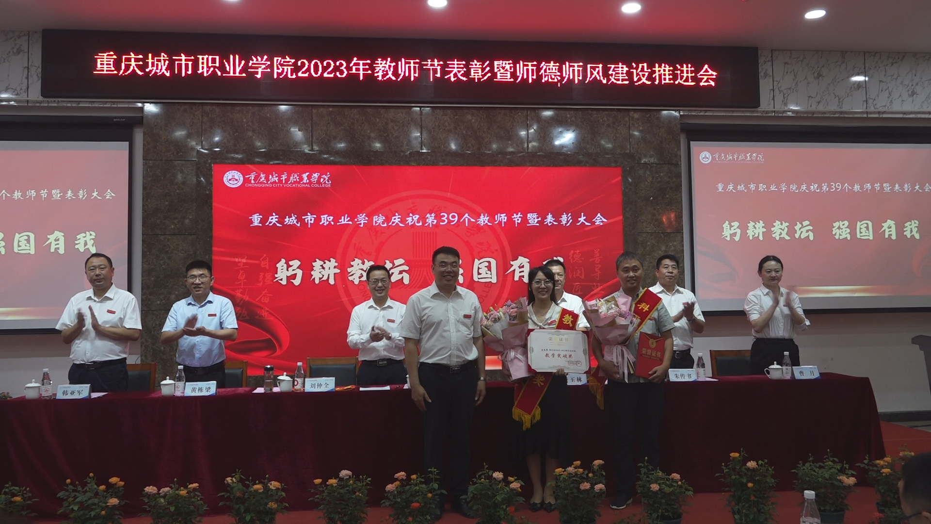 全体党委班子成员为优秀教师代表、优秀教育工作者代表、优秀辅导员代表、科研成果奖、教学突破奖等72名优秀个人和“城市匠星树人奖”获奖个人及团队代表进行颁奖。