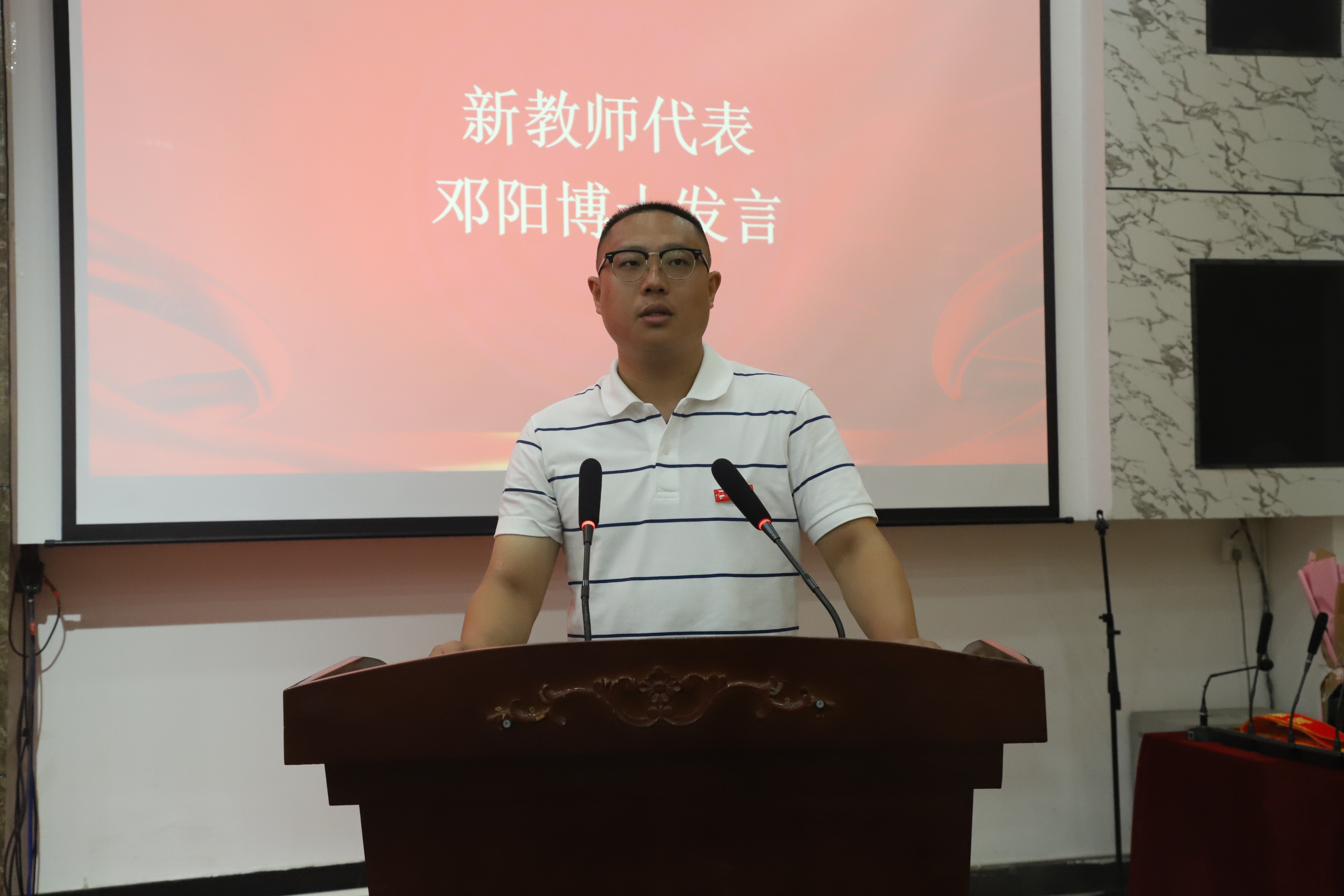 新教师代表邓阳博士发言