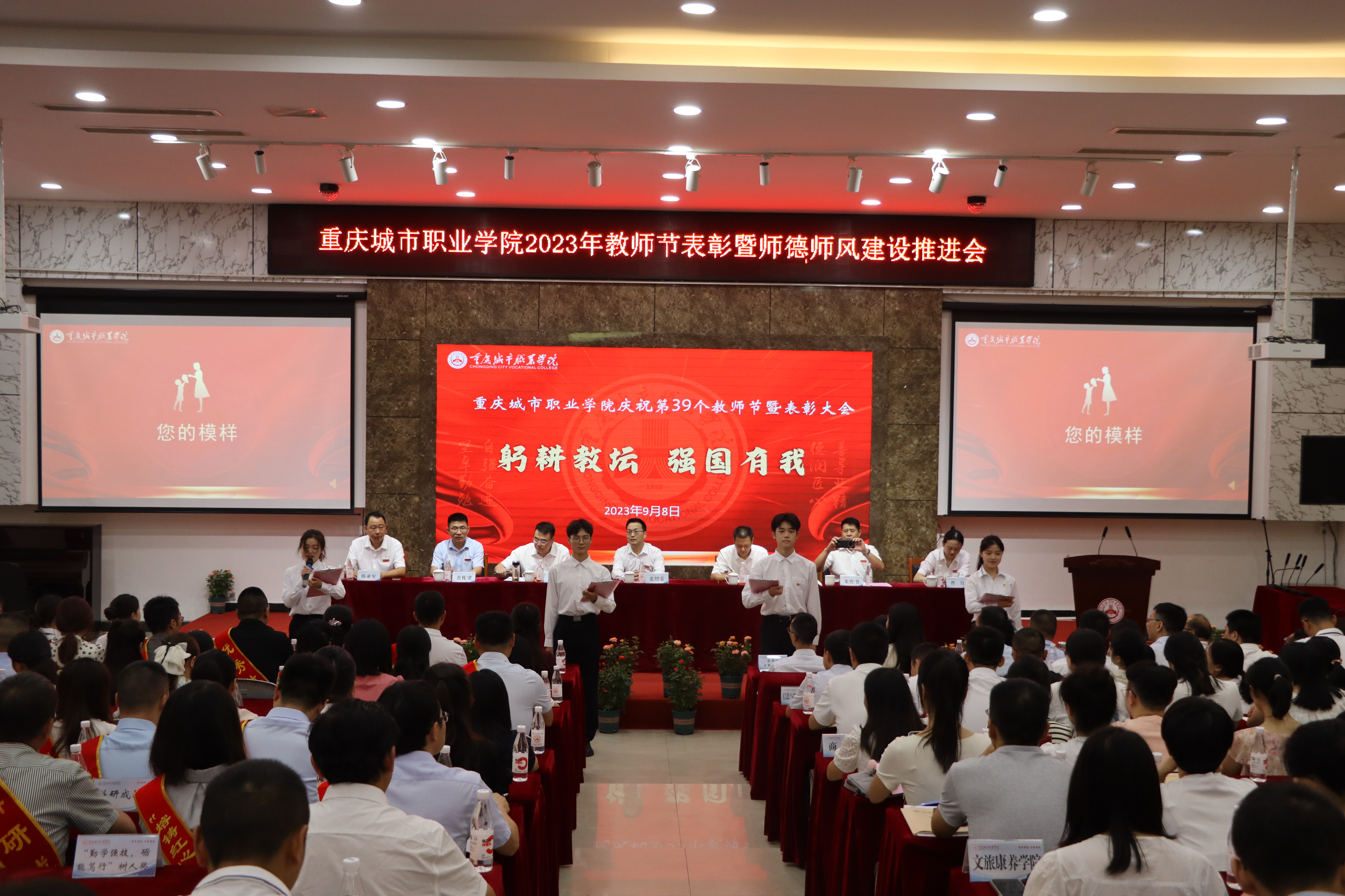 9月8日上午,学校在学术报告厅召开2023年教师节表彰大会暨师德师风建设推进会。学校党委书记张绍荣,党委副书记、校长唐玉林,党委委员、纪委书记朱传书出席会议,党委委员、副校长刘仲全主持会议。各单位主要负责人、受表彰的团队代表和优秀个人、教师代表等参加会议。