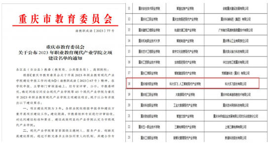 近日,重庆市教委公布了2023年职业教育现代产业学院立项建设名单,学校与科大讯飞股份有限公司合作共建的“科大讯飞人工智能现代产业学院”成功获批职业教育现代产业学院建设项目。