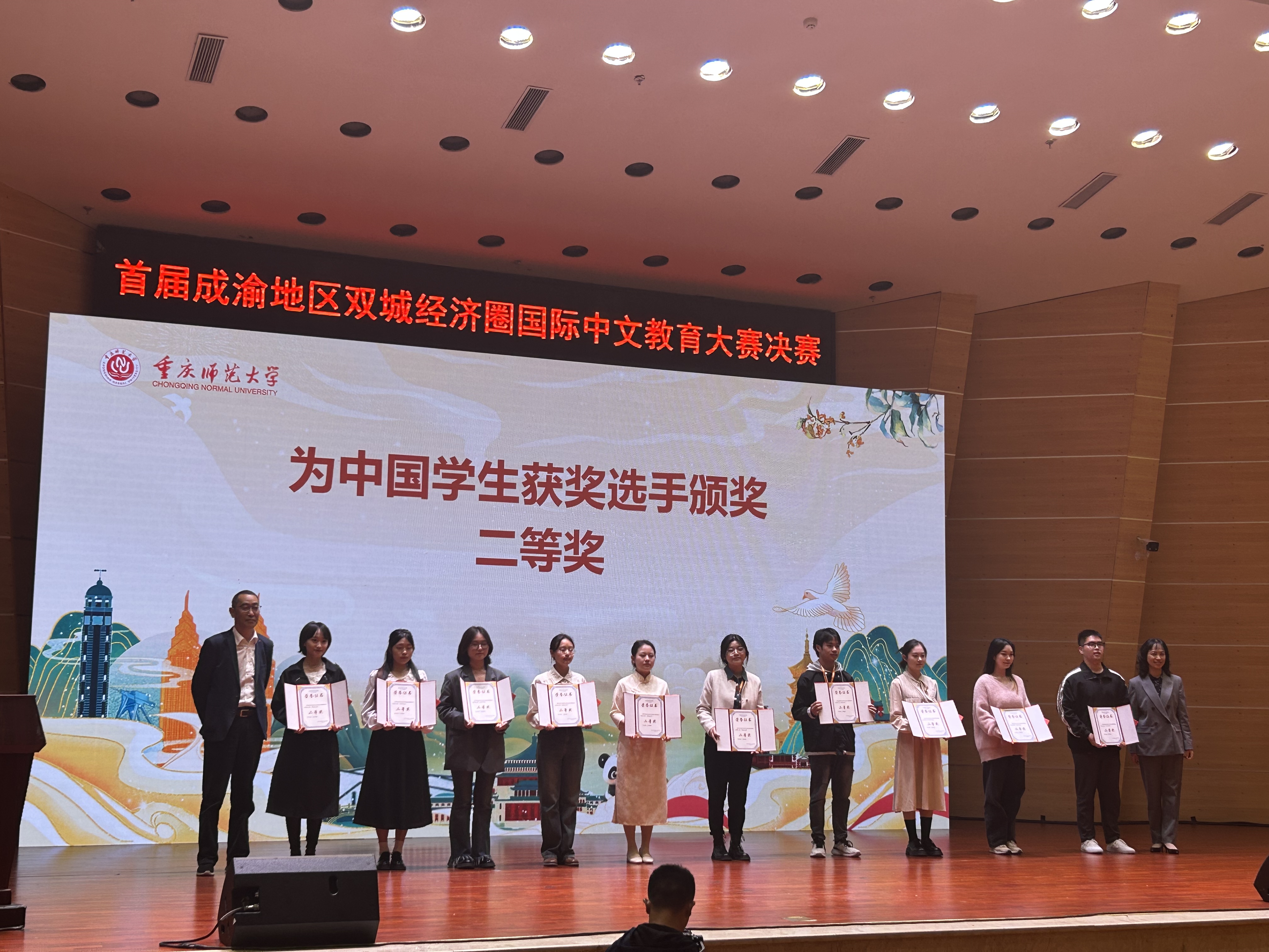 10月18-19日,首届成渝地区双城经济圈国际中文教育大赛决赛在重庆师范大学举行。无码影片 商学院教师杨婷婷、曹维指导的22级电子商务专业学生罗贵川荣获二等奖。