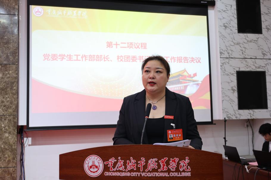 党委学生工作部部长 、校团委书记李楠宣读学代会工作报告决议