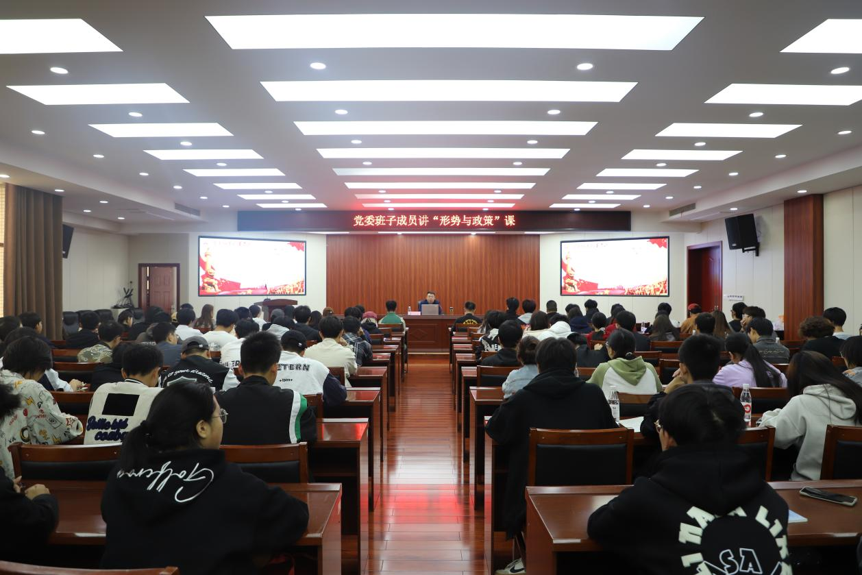 校党委班子成员黄栋梁、曹月、杨敏、韩亚军为学生讲授“形势与政策”课