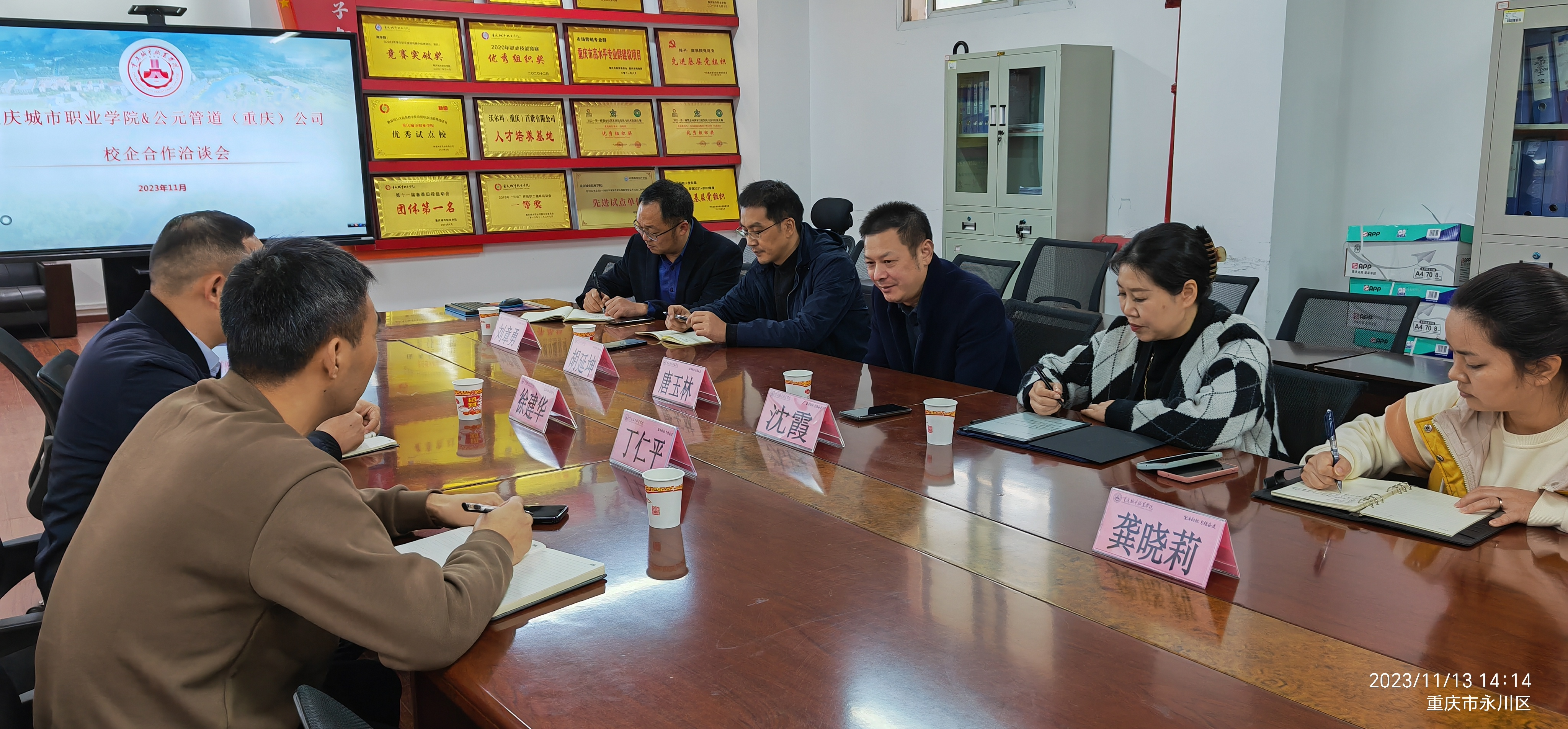 11月13日,学校校长唐玉林带队赴公元管道公司进行校企合作座谈交流,永川区人大代表、公元管道(重庆)有限公司总经理徐建华,人力资源部经理徐健,合作部经理丁仁平参加座谈交流。